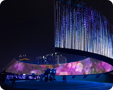 數(shù)字技術(shù): 3DMapping投影 、 弧幕影院 、 多媒體互動(dòng)裝置等